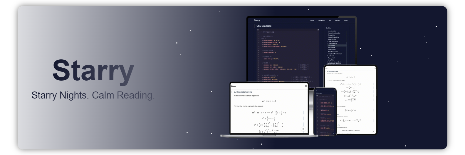 starry 意为繁星,之前看过我主题的小伙伴也表示,只是添加了背景粒子效果,跟 starry 完全不搭边。